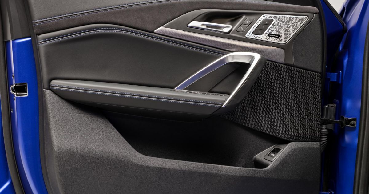 Once you’re inside there are a set of really cool-looking sport bucket seats that are part of the no-cost optional M Sport Package Pro package in Australia. They’re finished in black Veganza faux leather and Alcantara with blue contrast stitching.